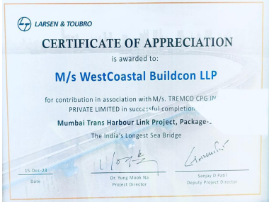 Prestigious 21.8 Km Longest Sea Bridgein India of the length of the sea is 16.50 kms and land portion of 5.5 Km. WestCoastal has done 620,000 Sqm of Bridge Deck waterproofing of entire bridge in 3 packages i.e. Pkg-1 for L&T –IHI Japan, Pkg-2 for Daewoo-Tata Projectsand Pkg-3 for L&T in 11 Months anddelivered the project with best quality, safety and timeline.